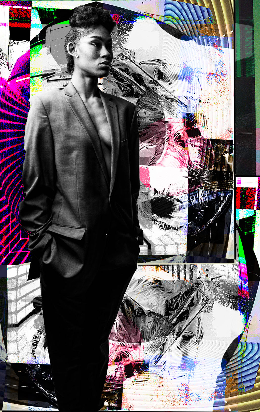 The concept behind these photos is to capture feminine and masculine features . In the first image I decided to manipulate a background to show the pop and subdued feeling of an artist's inner thoughts.